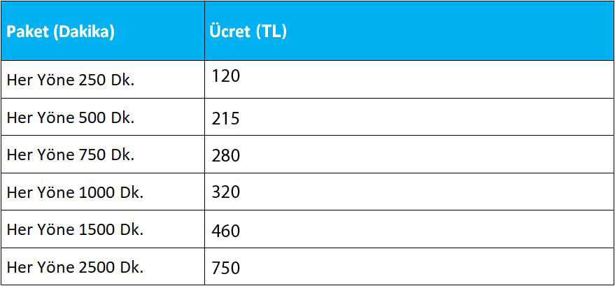 Paketteki dakikaların ücretlendirme periyodu 60 saniyedir.